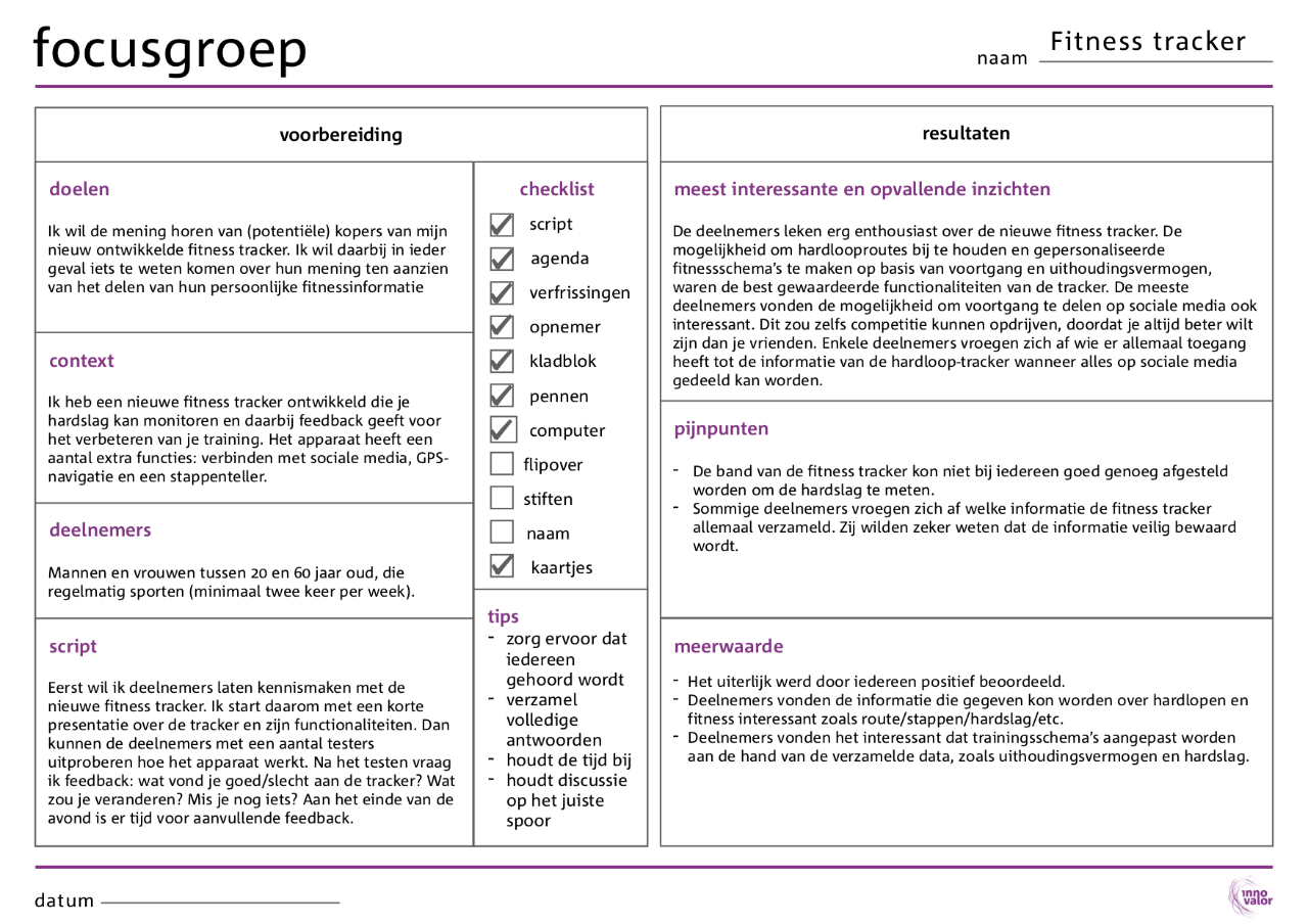 Het Focusgroep formulier helpt je om jezelf voor te bereiden op een succesvolle Focusgroep sessie.