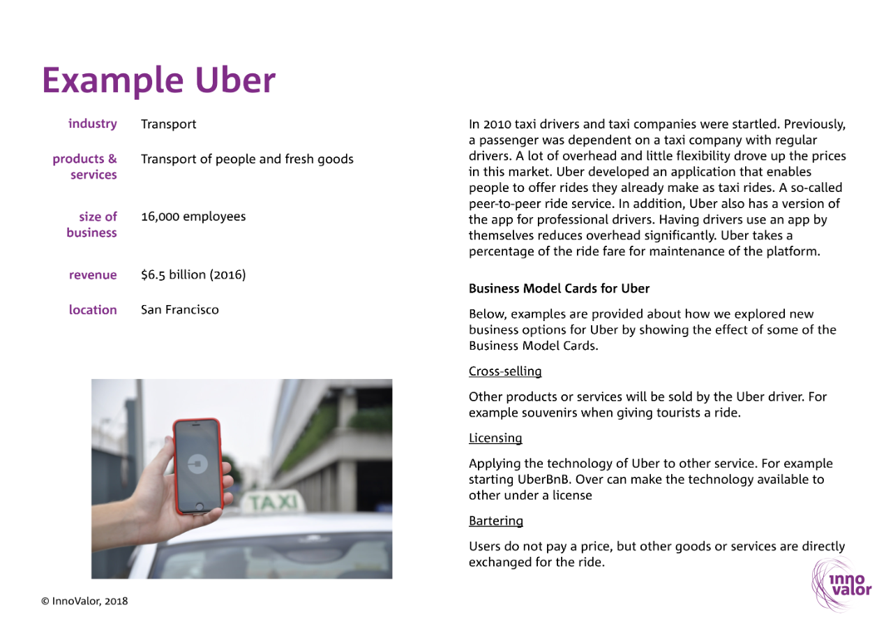 The Business Model Cards are a set of 52 cards. Together they provide a deck full of business model options that have already been used by others. On each card a business model is explained and illustrated with a real-life example on the back of the card.