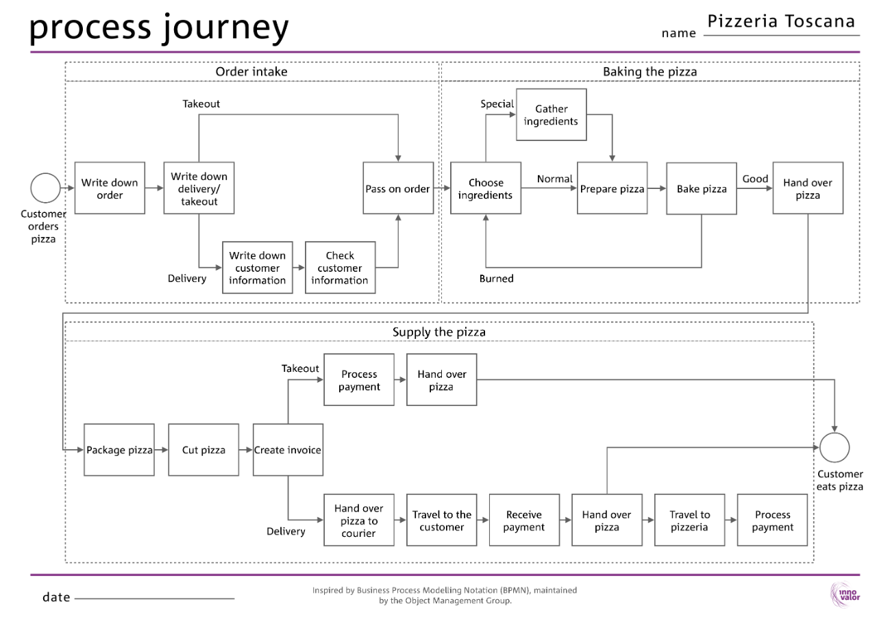 Have a look at the example of the Process Journey for Pizzeria Toscana to get inspired how this tool is applied in practice.