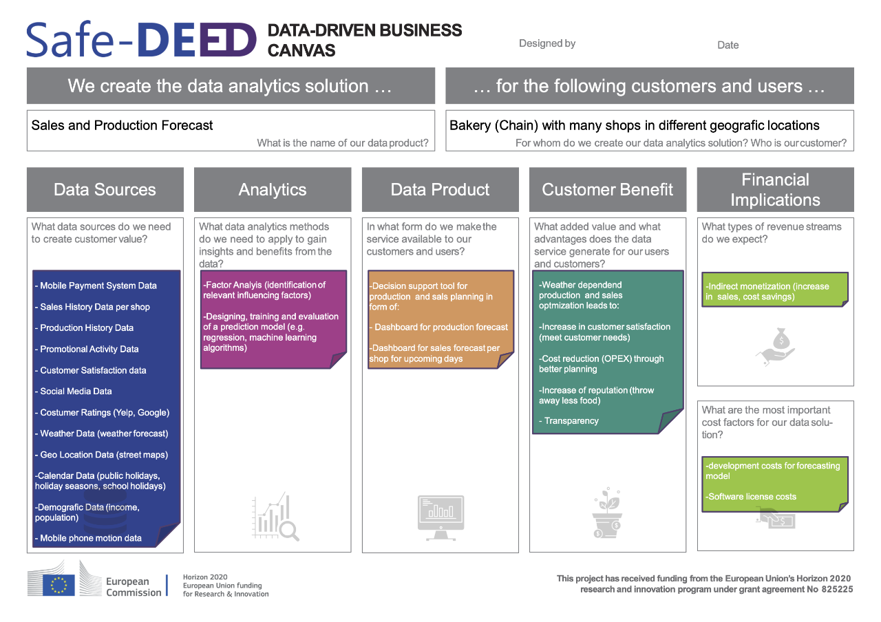 The development of this tool is based on a publication of Fruhwirth, M. et al. (2020) “The Data Product Canvas. A Visual Collaborative Tool for Designing Data-Driven Business Models.” The present further development of the canvas was supported by the European Union’s Horizon 2020 project www.safe-deed.eu under grant agreement No 825225.