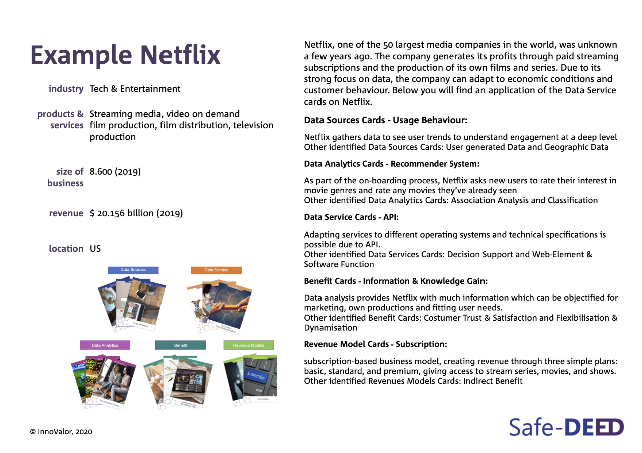 The development of this tool is based on a publication of Breitfuss, G. et al. (2020) “Data Service Cards - A supporting tool for Data- Driven Business” The present further development of the Data Service Cards was supported by the European Union’s Horizon 2020 project www.safe-deed.eu under grant agreement No 825225.